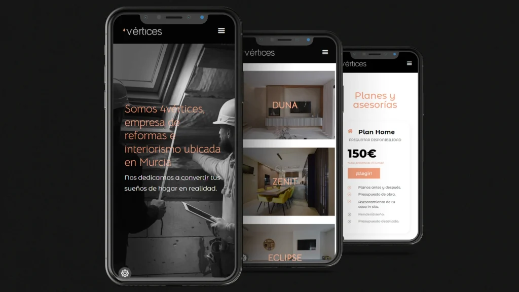Diseño Branding y web, empresa interiorismo. 4vértices fue creada para una empresa de reformas e interiorismo en el que diseñé un branding que se ajustara a lo que quería transmitir la marca, una identidad elegante, moderna y desenfadada. El diseño web fue creado a partir de ahí con la idea de informar de los servicios y tarifas, así como de los proyectos fotográficos.