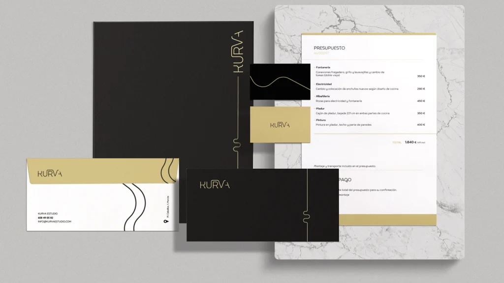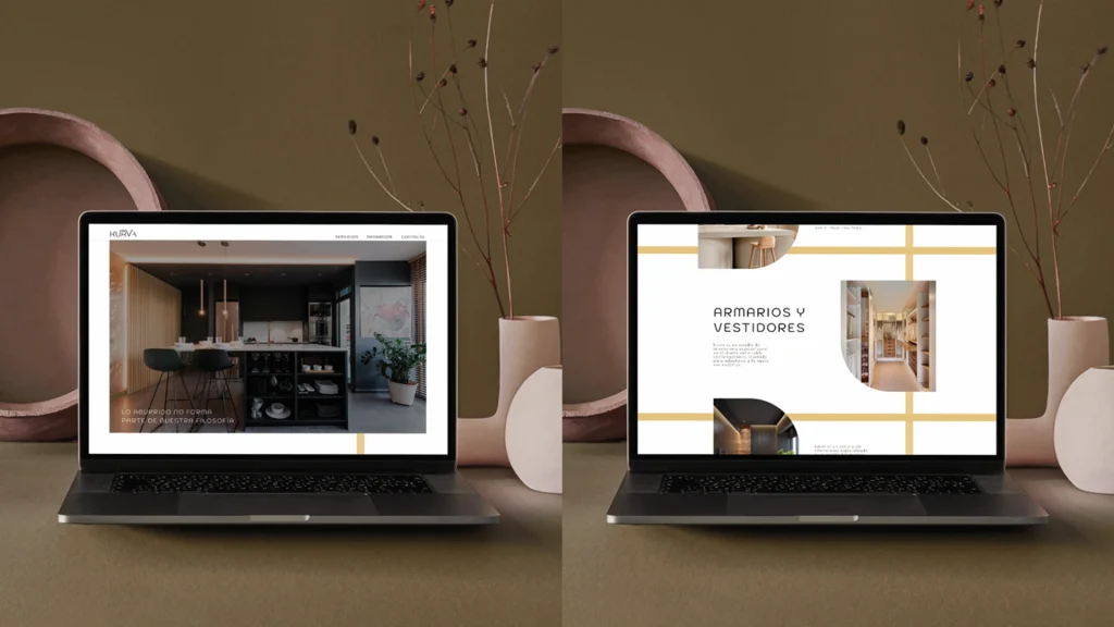 Diseño de branding y web para una empresa de diseño de interiores. Diseñé un estilo minimalista y elegante que también expresara el lujo con ese color dorado y letras delicadas. La web sigue la línea de lo elegante y minimalista.