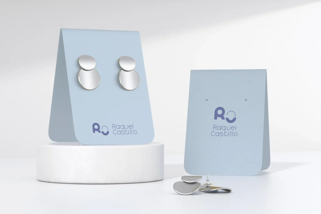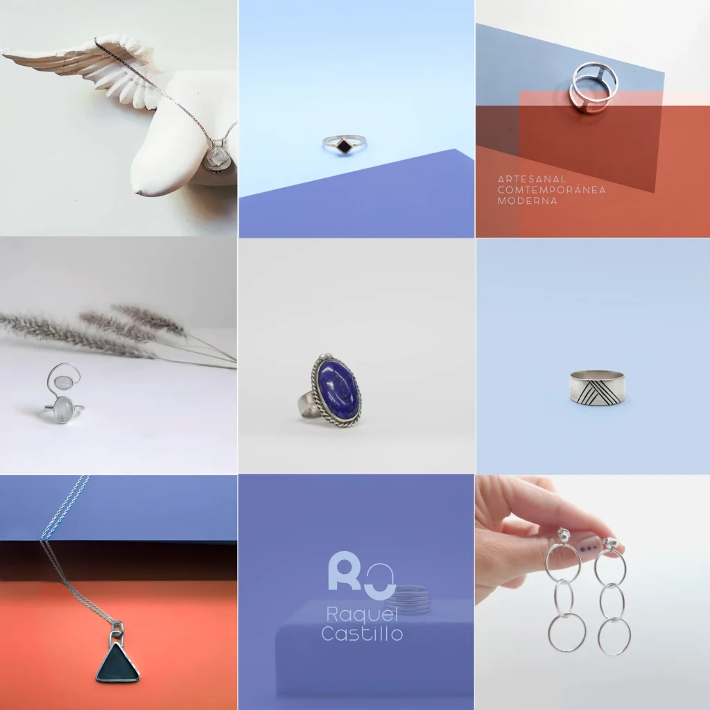 Diseño branding de una artista de diseño de joyas. Su diseño fue inspirado en la Bauhaus, con sus formas geométricas y arte moderno. La artista se sentía identificada con el color morado, que es el color principal de la marca, seleccionado por su expresión feminista y creativa.