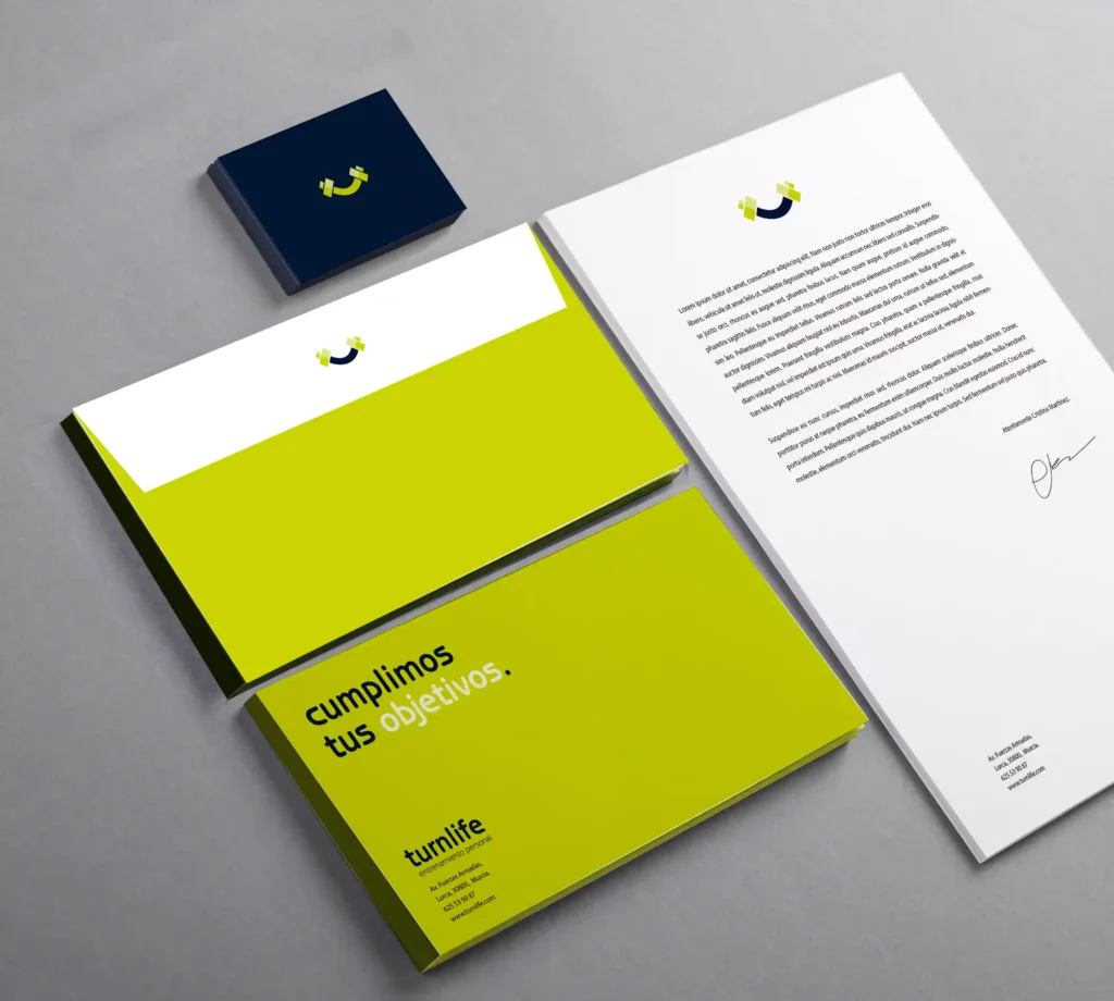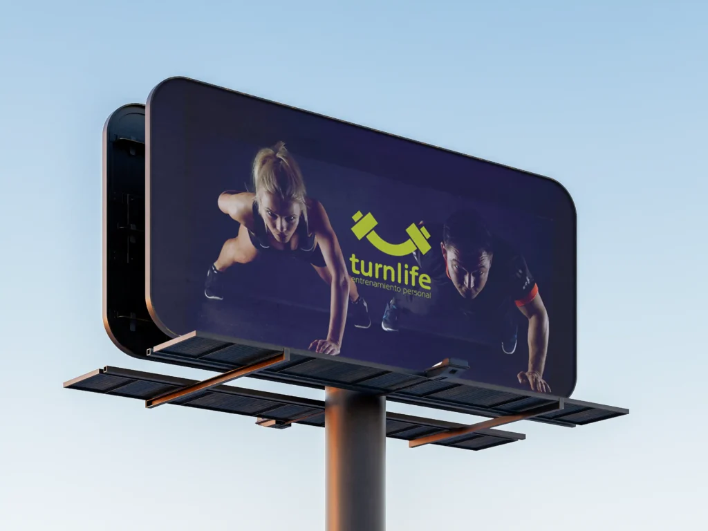 Diseño de branding y naming. Proyecto diseñado para una monitora extrovertida, profesional, alegre y con energía. Todo esto quería expresarlo con la marca, por ello dibujé una mancuerna con forma de sonrisa y turnlife, viene de darle una vuelta o giro a tu vida. Una marca con un expresión muy positiva.